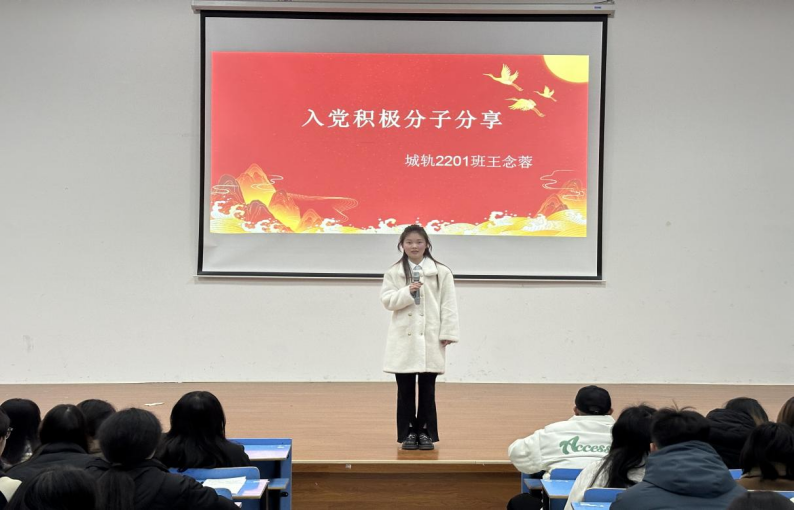 现场还邀请了2023级入党积极分子作交流发言。城轨2201班王念蓉分享了自己暑期“三下乡”、寒假“返家乡”的社会实践经历,号召学弟学妹们多参加社会实践,多深入基层,了解国情、民情,为社会发展作贡献。