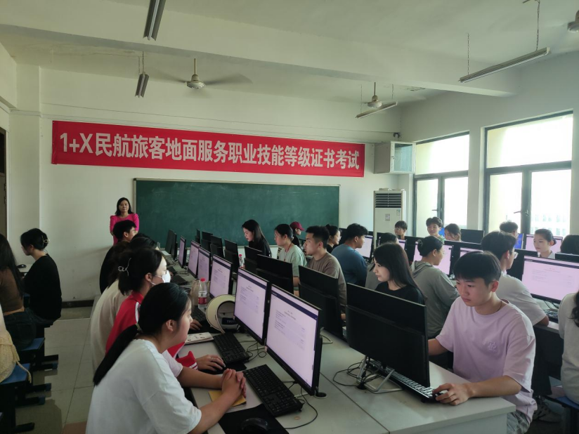 6月10日,交通运输学院组织开展2021级空中乘务专业学生“1+X民航旅客地面服务(中级)”考核取证工作,36名学生顺利通过考试。