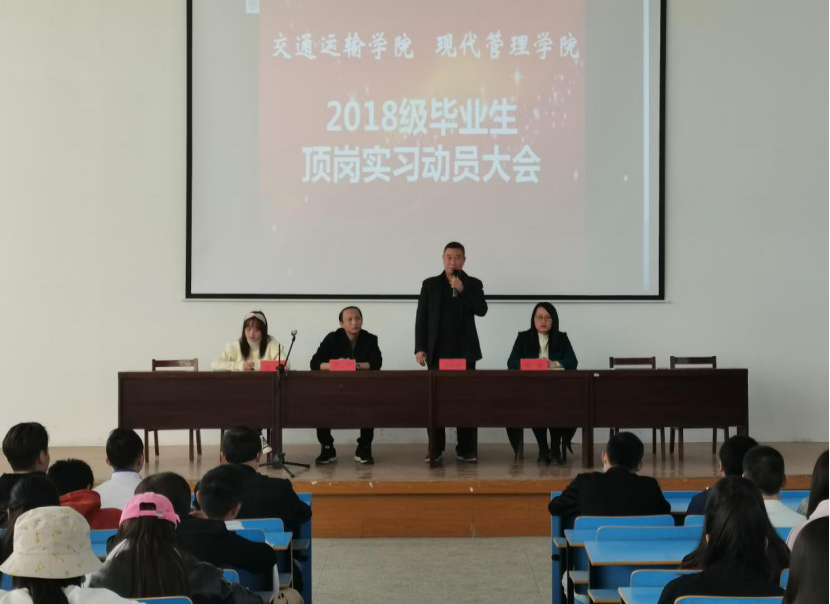 2020年11月11日下午,交通运输/现代管理学院在六号楼三楼阶梯教室召开了2018级学生顶岗实习动员大会。学院院长张显辉、党总支书记张劲、副院长蒋珊、李慧,2018级班主任及学生出席了会议。