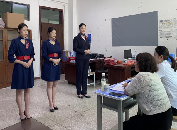 宣讲会后,机场方在106教室举行了实习现场面试。同学们身穿制服、调整妆发,分组参加了面试。面试过程中,他们言谈举止落落大方,形象气质优雅得体,获得了面试官的肯定,也为自己争取到了宝贵的实习机会。