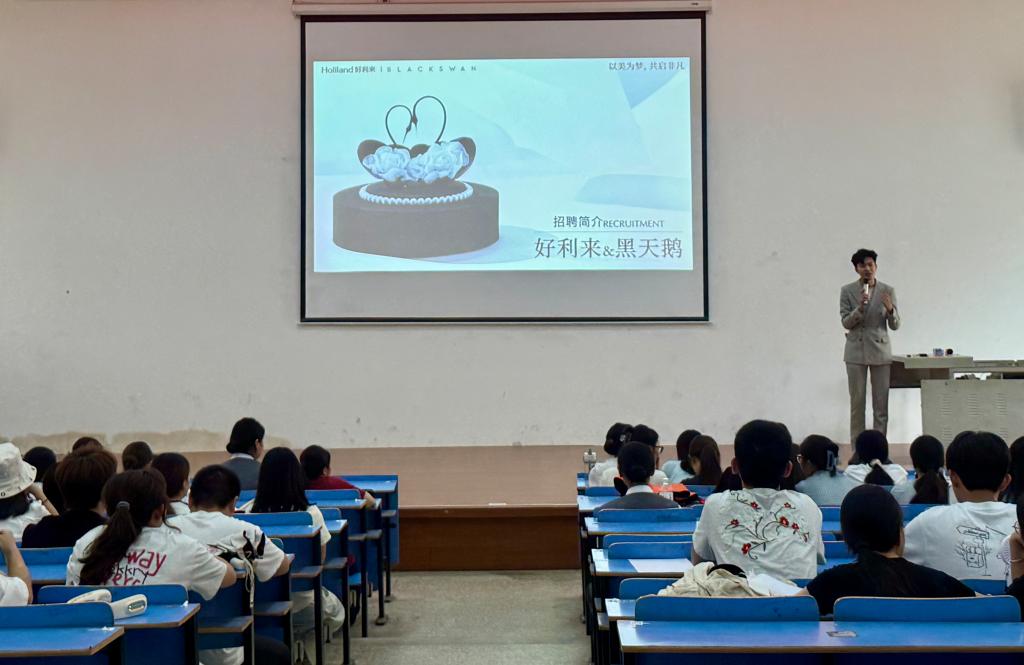 7月8日,国内烘焙行业领军企业好利来食品有限公司走进襄阳汽车职业技术学院交通运输学院,面向高速铁路客运服务、城市轨道交通运营管理专业学生开展实习专场宣讲。活动通过“企业展示+岗位解读+互动答疑”的形式,吸引了200余名学生参与,为校企双方搭建起人才供需对接的桥梁。