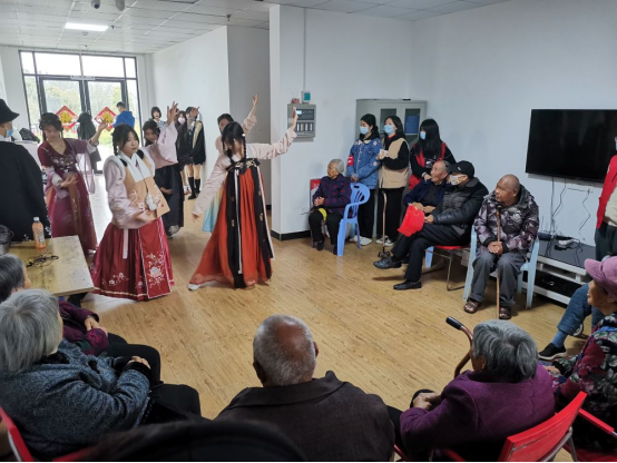 在整个志愿活动开展期间,同学们有的陪老人们拉拉家常、讲讲笑话,给老人们带去欢笑和快乐;有的帮助老人整理内务,打扫卫生,捶捶背,使老人变得轻松;有的到户外和老人聊天,听老人讲讲过去,讨论一下现在,不仅使老人摆脱的寂寞,也使自己受到了教育。同时,汉服社的同学们还为老人们带来了精彩的表演,看到老人们灿烂的笑容,听到老人们爽朗的笑声,志愿者们充分体会到了本次志愿活动的意义所在——弘扬志愿精神,关注老年群体。