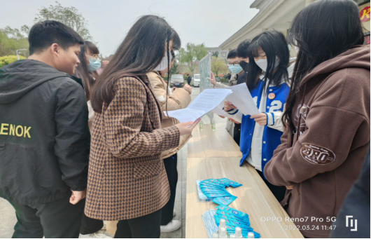 随着全国各地疫情防范工作的不断推进,阶段性成效不断显著,疫情防控也成为常态化工作,2022年3月24日,交通运输学院现代管理学院志愿者在食堂门口开展科学防疫知识宣传活动,旨在加强学生们防护意识。