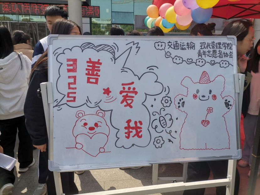 3月25日,交通运输学院现代管理学院在餐厅门口开展“以爱之名善爱自己”心理健康教育主题活动,谐音“善爱我”,鼓励大学生从关爱自我身心健康做起,以阳光心态面对学习与生活,营造全校健康向上、和谐奋进的育人氛围。