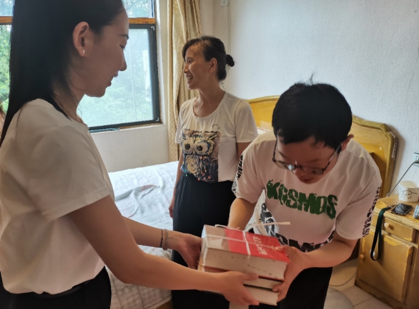 7月27日下午,交管学院党总支书记覃小航、学管办主任刘豫樊、班主任陈曼曼一行到学生范贇威家中进行走访。