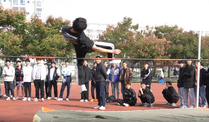 男子200米跳高、跳远运动员在步伐优美的助跑后,一跃,身体在空中划出一道弧线,迅速收脚过,优美的跳跃姿势,每一次起跳,都是挑战,是超越。