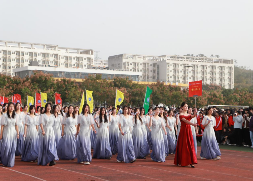 伴随着绚丽的彩烟,各专业方阵、表演方阵踏着《运动会进行曲》,迈着整齐的步伐,喊着嘹亮的口号,在经过主席台前时,以独特的形式为大家带来了独具专业特色的、活力满满的节目表演,展示了同学们高远的目标、广阔的胸襟和青春靓丽的风采。
