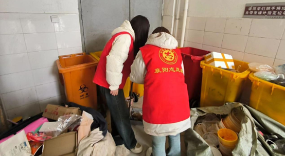 在寝室楼里,青年志愿者们主动清理垃圾,帮助同学们填补寝室内墙角漏洞,向同学们宣讲防火防盗安全知识,嘱咐大家在寝室内安全用电,提高同学们的安全意识。
