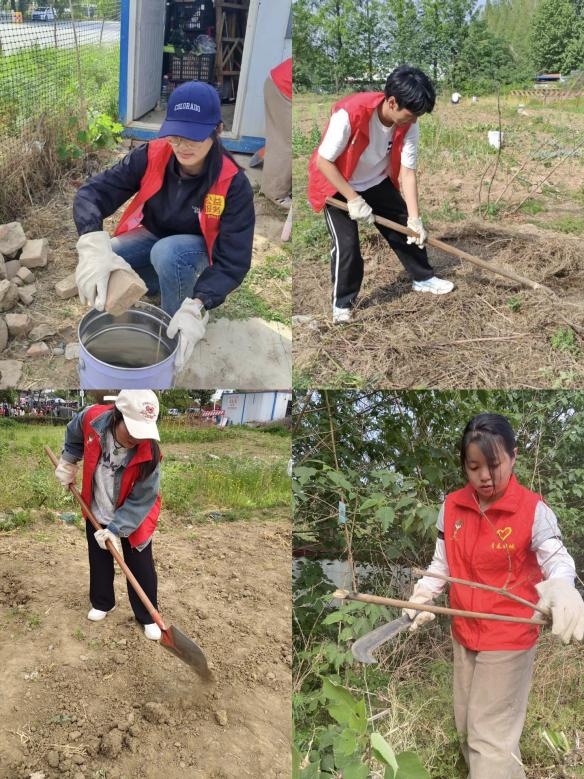 为大力弘扬劳动精神,在“五一”国际劳动节来临之际,交通运输学院城轨24级1班团支部于4月25日前往樊西实验小学开展了一次别样的主题团日活动,此次活动以“五一耘梦田园行”为主题,旨在培养学生的实践能力与责任担当。同学们深入田园,投身除草、捡拾杂物、修剪竹竿搭架子、打水井、翻土等劳动,用实际行动诠释襄汽学子的青春力量。