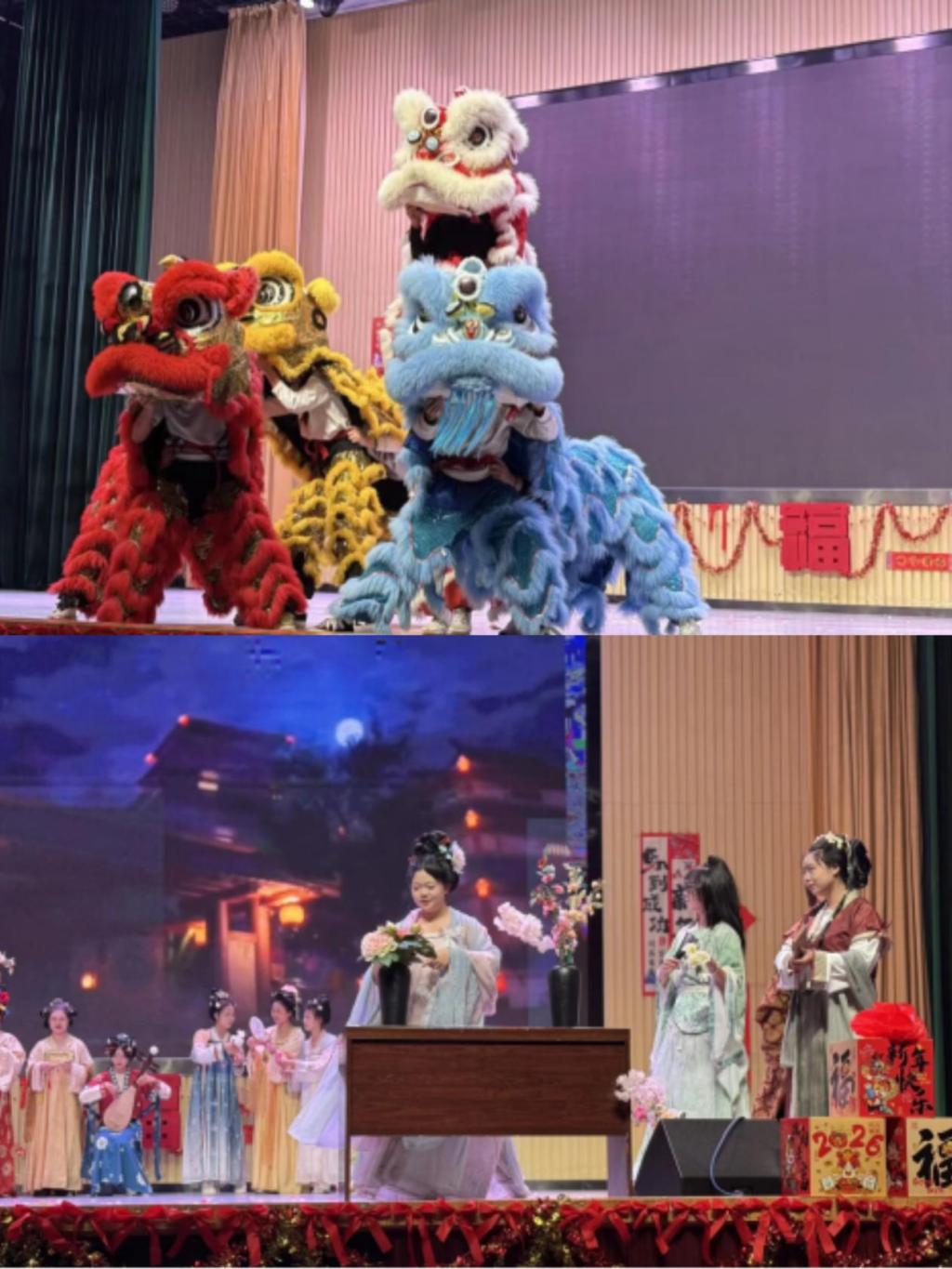 礼仪社的节目《礼韵》优雅端庄,将礼仪之美演绎得淋漓尽致。华忆阁汉服社的《长安元宵,灯火寄情》带领观众梦回大唐上元夜,华美服饰与唯美场景相映成趣,寄托了美好团圆的情思。舞狮社的《开心向前冲》更是将传统民俗与欢庆节奏完美结合,灵动威武的狮子穿梭腾跃,寓意着新的一年奋勇向前、吉祥如意,把欢乐气氛推向高潮。