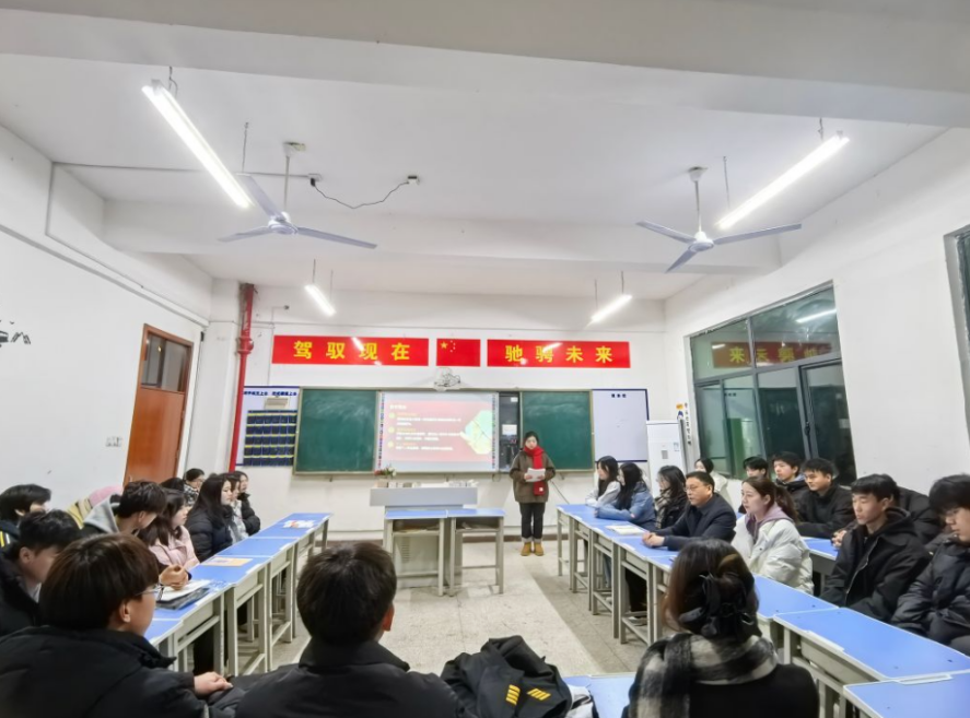 2024年12月15日,襄阳汽车职业技术学院交通运输学院空中乘务2401班举行了一场别开生面的主题班会,以“回顾2024,展望2025”为主题,旨在总结过去一年的成绩与不足,并为新一年的学习与生活制定明确目标与计划。此次班会由班主任颜娉婷主持,学校党委副书记、校长程传红作为联系该班的校领导参加了班会,交管学院党总支书记覃小航、副院长李慧陪同参与,班会气氛热烈。