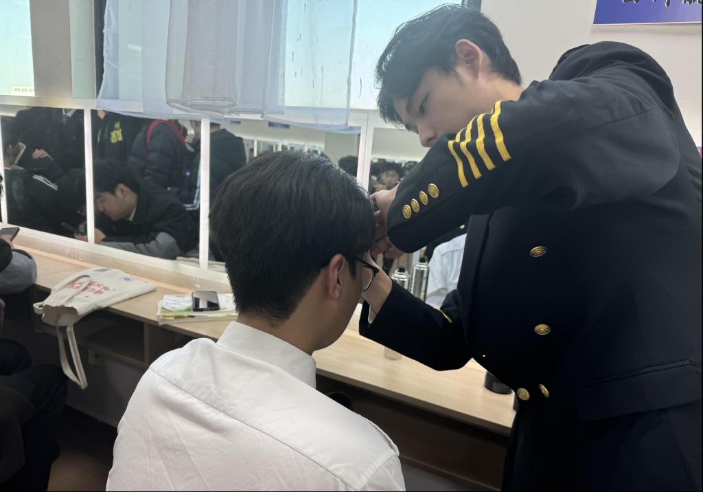 为引导学生树立职业信念,端正职业态度,全面提升学生的职业素养与形象气质,为未来的空乘职业生涯奠定基础,2024年12月16日,交通运输学院空中乘务专业开展了一场以“‘妆'点风采,列阵启航”为主题的化妆与列队展示活动。
