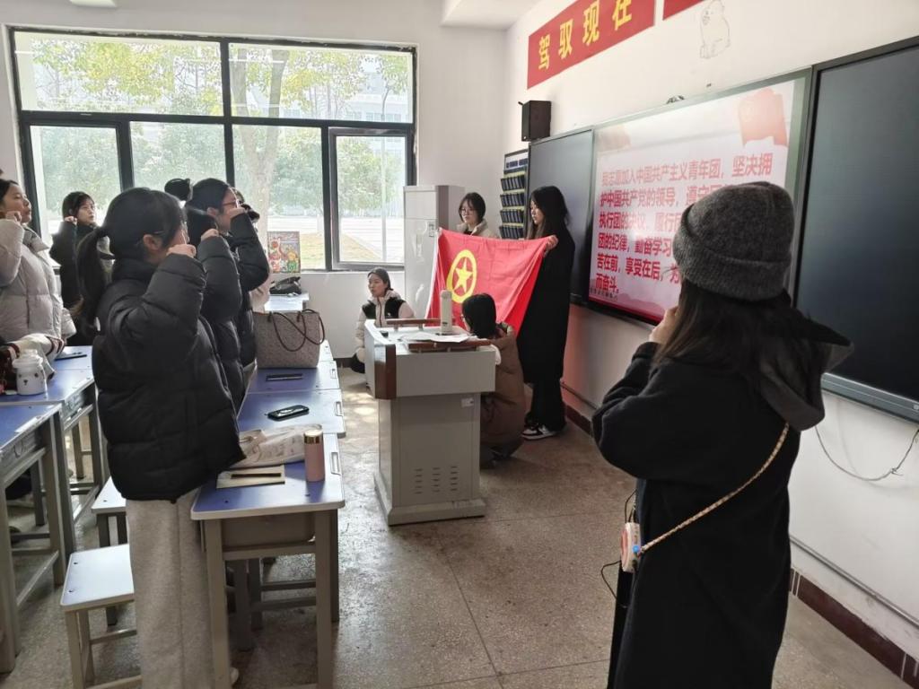 会议在庄严肃穆的氛围中拉开帷幕,全体团员佩戴团徽,重温入团誓词,誓言铿锵有力,表达了大家坚定的信念和决心。随后,颜娉婷带领大家进行了团纪学习教育,通报了团支部委员会纪律建设情况,强调了团组织纪律的重要性和必要性。