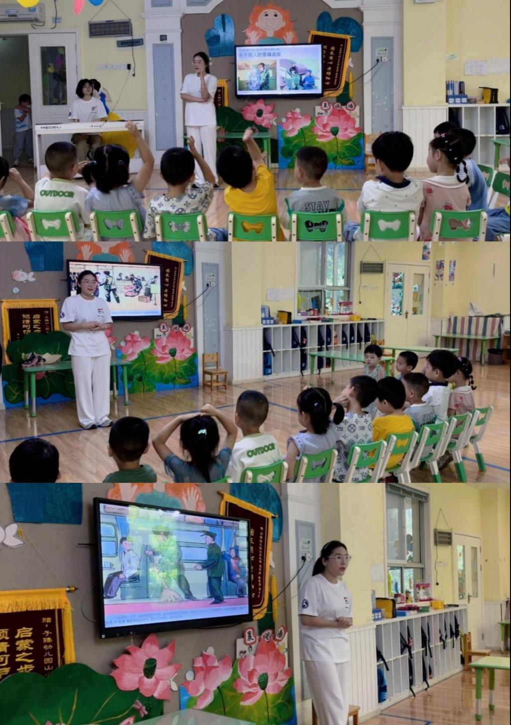 7月7日上午,团队来到活动第一站——襄阳市子榛幼儿园,开展以“学习雷锋好榜样”为主题的红歌传唱活动。孩子们用清澈而坚定的歌声致敬时代楷模,将雷锋精神的火种播撒在每一个纯真的童年记忆里。
