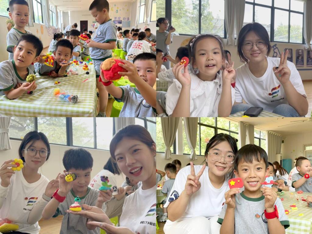 最热闹的当属超轻粘土环节。老师一句“我们用粘土做个‘小雷锋’吧”,孩子们立刻动起手来:圆圆的脑袋、胸前的红领巾、助人的姿势……还有的小朋友开动小脑筋,做了小红星小国旗,一个个的粘土作品是孩子们对“雷锋精神”最纯真的诠释。