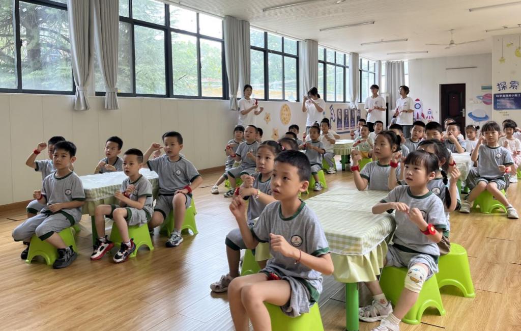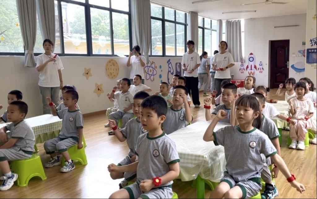 故事的温暖还未散去,《学习雷锋好榜样》的激昂旋律便在教室里响起。“学习雷锋好榜样,忠于革命忠于党……”队员们带领着孩子们逐句学唱,清脆的童声汇聚成一股充满朝气的力量。小朋友们在歌声与律动中感受雷锋叔叔的优秀品质,“乐于助人”“无私奉献”的精神随着歌曲悄悄融入了心田。