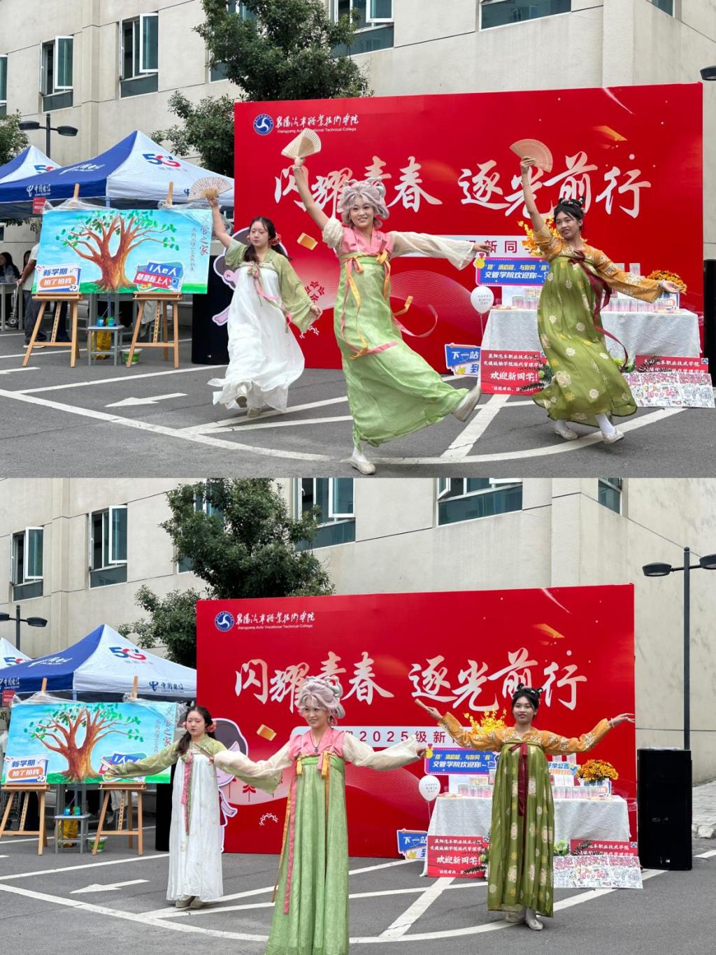 为营造热烈欢快的庆典氛围,汉服社的同学们带来了精彩纷呈的表演。优雅华美的汉服秀演绎着传统文化的韵味,为现场新生带来了一场视听盛宴,也将活动的气氛推向高潮。