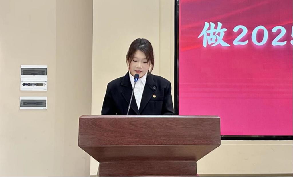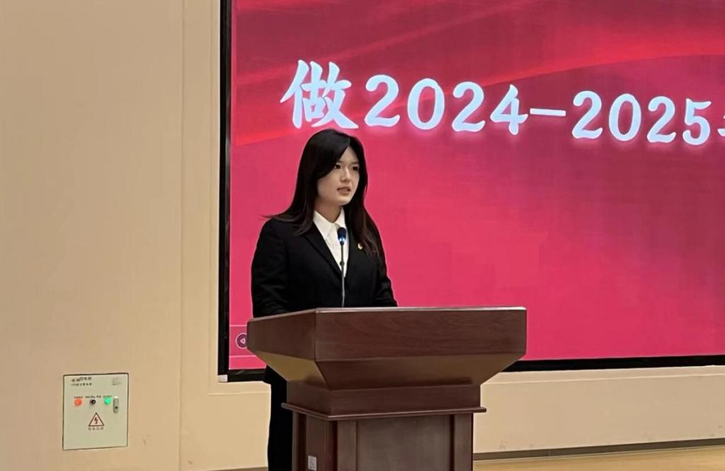 随后,学生会主席团代表董静怡同学做《2025年度学生会工作计划》报告,她代表主席团郑重承诺,新一届学生会必将以饱满的热情、务实的作风,将计划付诸行动,将蓝图变为现实,切实履行服务同学的宗旨,为学院的建设与发展贡献青春的智慧与力量。