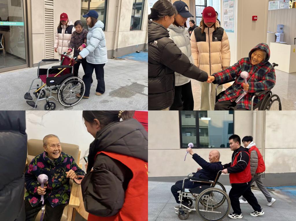 活动末尾,同学们为老人们送上艾草锤、钥匙扣等贴心小礼物。无人机专业同学们发挥专业特长,操控无人机为大家拍摄合影和短视频,记录老人的幸福笑脸。